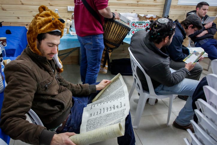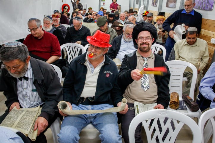 The synagogue, a place for prayer and meditation, becomes a stage for raucous celebrations that accompany the reading of the Scroll of Esther.