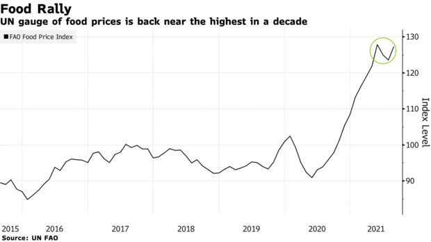 That’s adding to a long list of problems for the food supply chains this year — from extreme weather pounding crops to soaring freight costs and shipping bottlenecks. All of that is threatening to compound inflation….