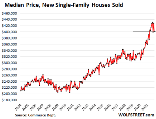 And that adds to the likelihood of that housing bubble bursting because prices will have to fall a lot more as mortgage rates keep rising due to bond yields that are already soaring, even though the Fed hasn’t yet begun to try to offload some of the trillions in bonds it sopped up from the market over the past decade. The Fed’s balanced-sheet rewind, as it attempts to offload trillions in bonds, will drive bond yields up further. That begins in about month (and likely ends sooner than the Fed believes it will in a calamitous failure). All of that leaves no hope for the housing bubble. Implosion by way of market seizure and crashing prices in the face of soaring mortgage and construction loan interest are inevitable.