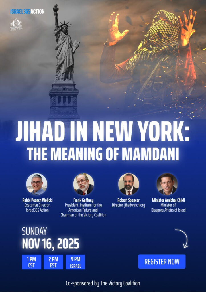 In the wake of Zohran Mamdani’s stunning election as New York City’s mayor—the first openly anti-Zionist politician to lead the most Jewish city outside of Israel—Israel365 Action and the Victory Coalition are convening an emergency webinar featuring some of the most important voices in the fight against antisemitism and jihadist ideology. The webinar will take place this Sunday, November 16, at 2 PM EST / 1 PM CST / 9 PM Israel time.