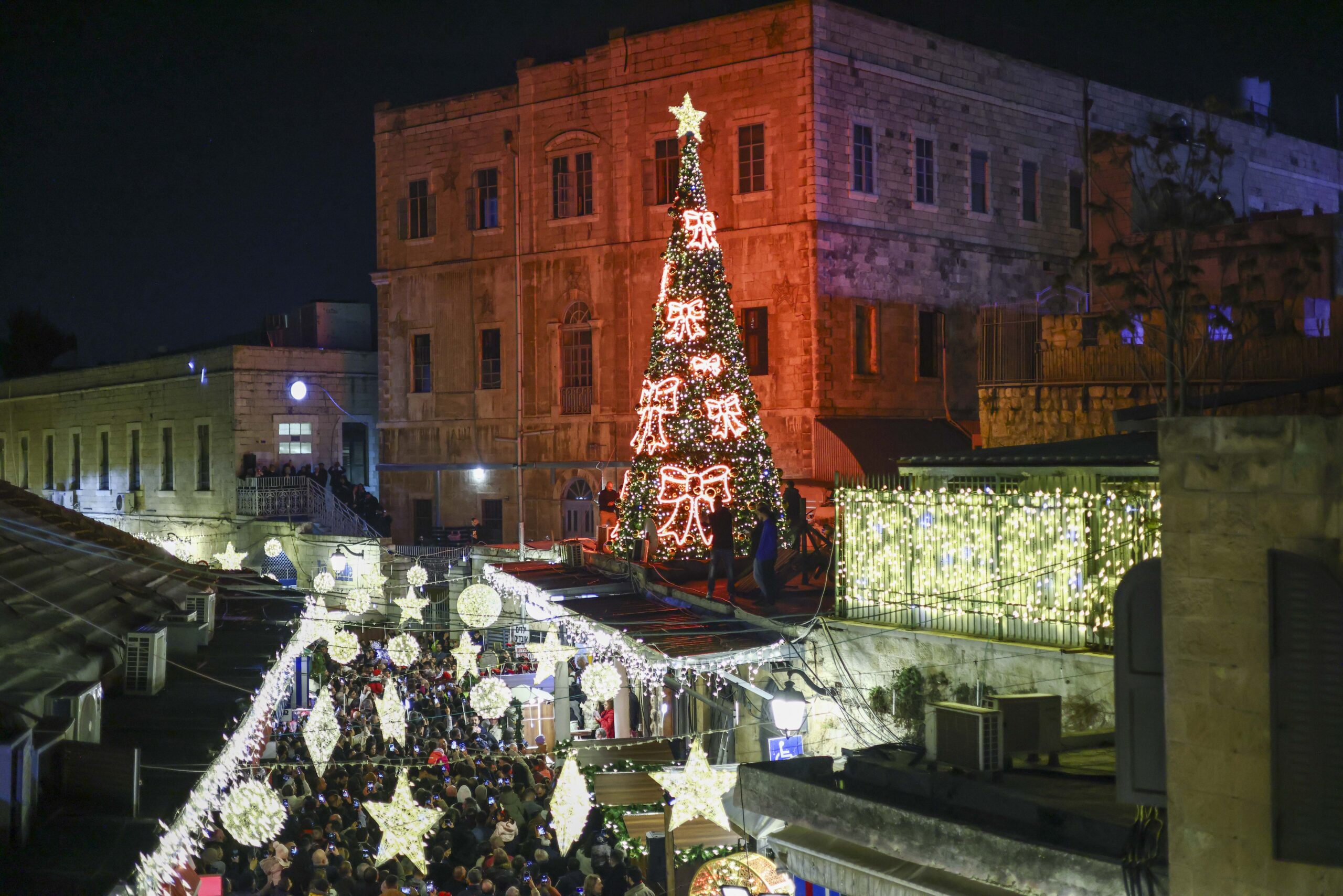 NOW: Christians in Israel have relit the Christmas tree at the Holy Redeemer Church in Jenin after it was burned yesterday by Islamist extremists.pic.twitter.com/1rrfubIGJj