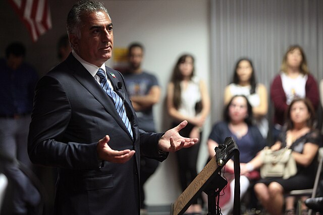 Reza Pahlavi, Crown Prince of Iran speaking at an event hosted by the Center for Political Thought & Leadership at Arizona State University in Tempe, Arizona. (Gage Skidmore via Wikimedia Commons)