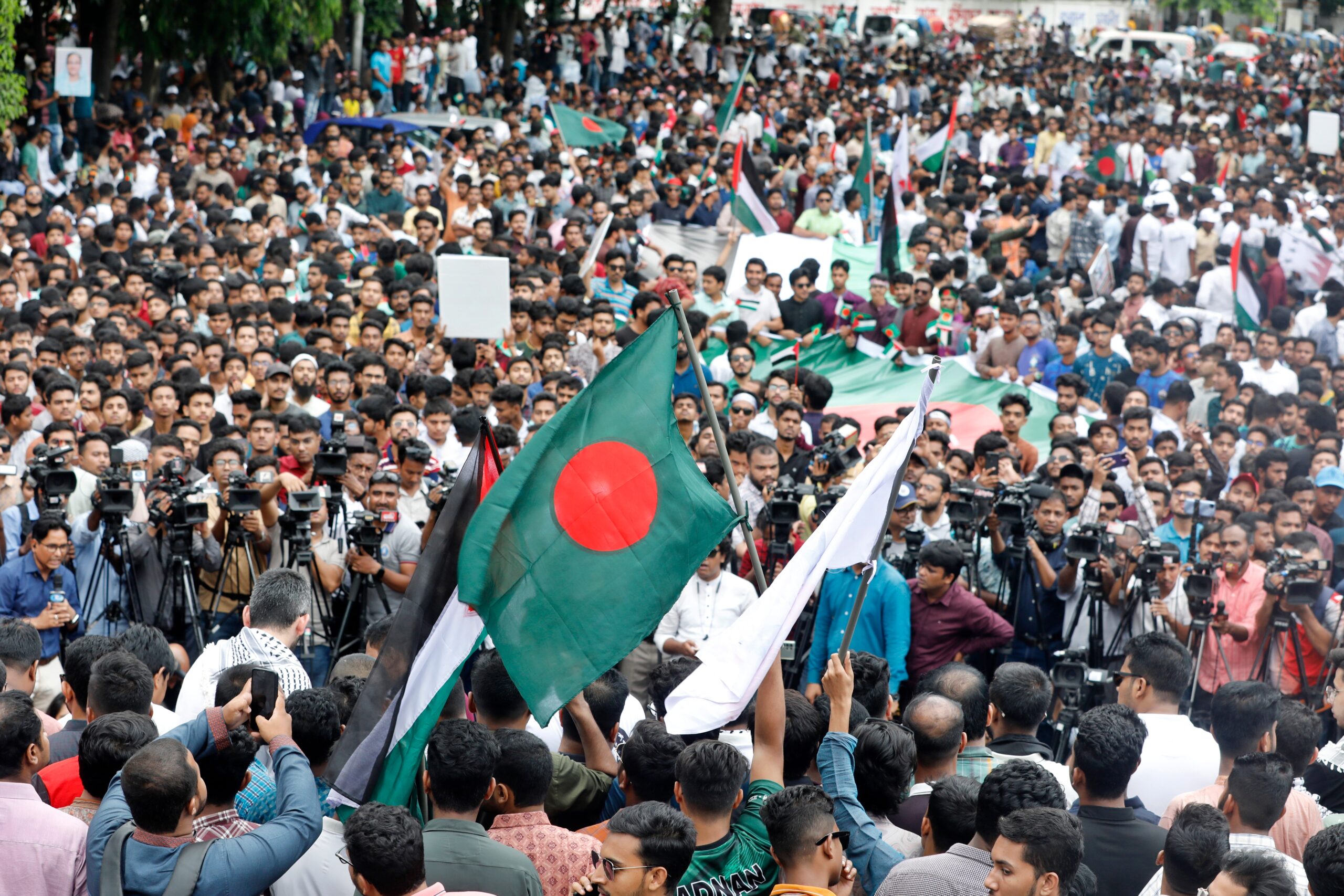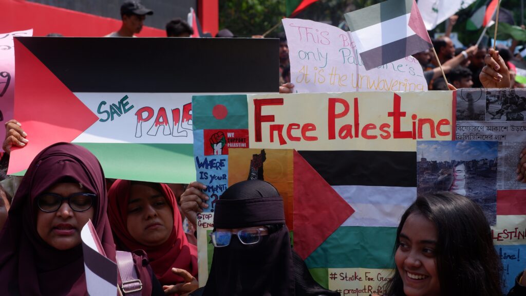 Dhaka, Bangladesh – May 6, 2024: Members of the Bangladesh Chhatra League hold a Pro-Palestinian march and rally at the University of Dhaka. (Source: Shutterstock)