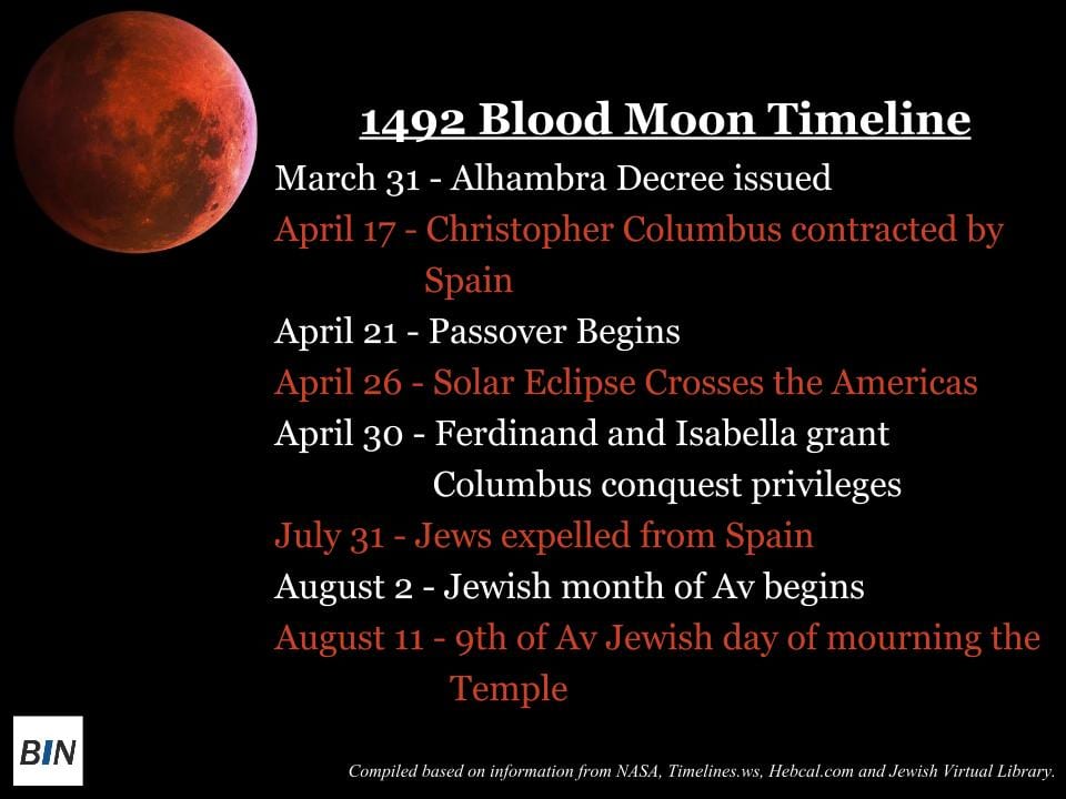 The ships from Columbus’s second voyage in 1493 (the first year of the blood moon tetrad) were amazingly recreated on-screen. With their vivid Spanish sails (perhaps filmed off the coast of North Carolina for convenience) the view of those ships sailing together in unison was a gorgeous reminder of the adventure and opportunities that the New World, our world for those of us that live in the America’s, beckoned to Jews in Europe more than 500 years ago.