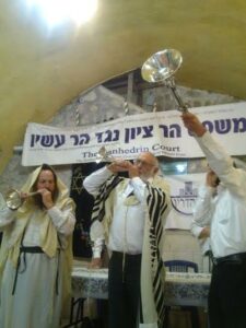 After appointing each of the judges to sit on the nascent Sanhedrin, silver horns, similar to those used in the service of the Jewish Temples, and shofars (rams horns), were blown. The trial was opened with the statement: “Joyous is the nation who hears the shofar. Joyous is the nation who knows that this is their land. When will it be that we hear the shofar of the Messiah?”